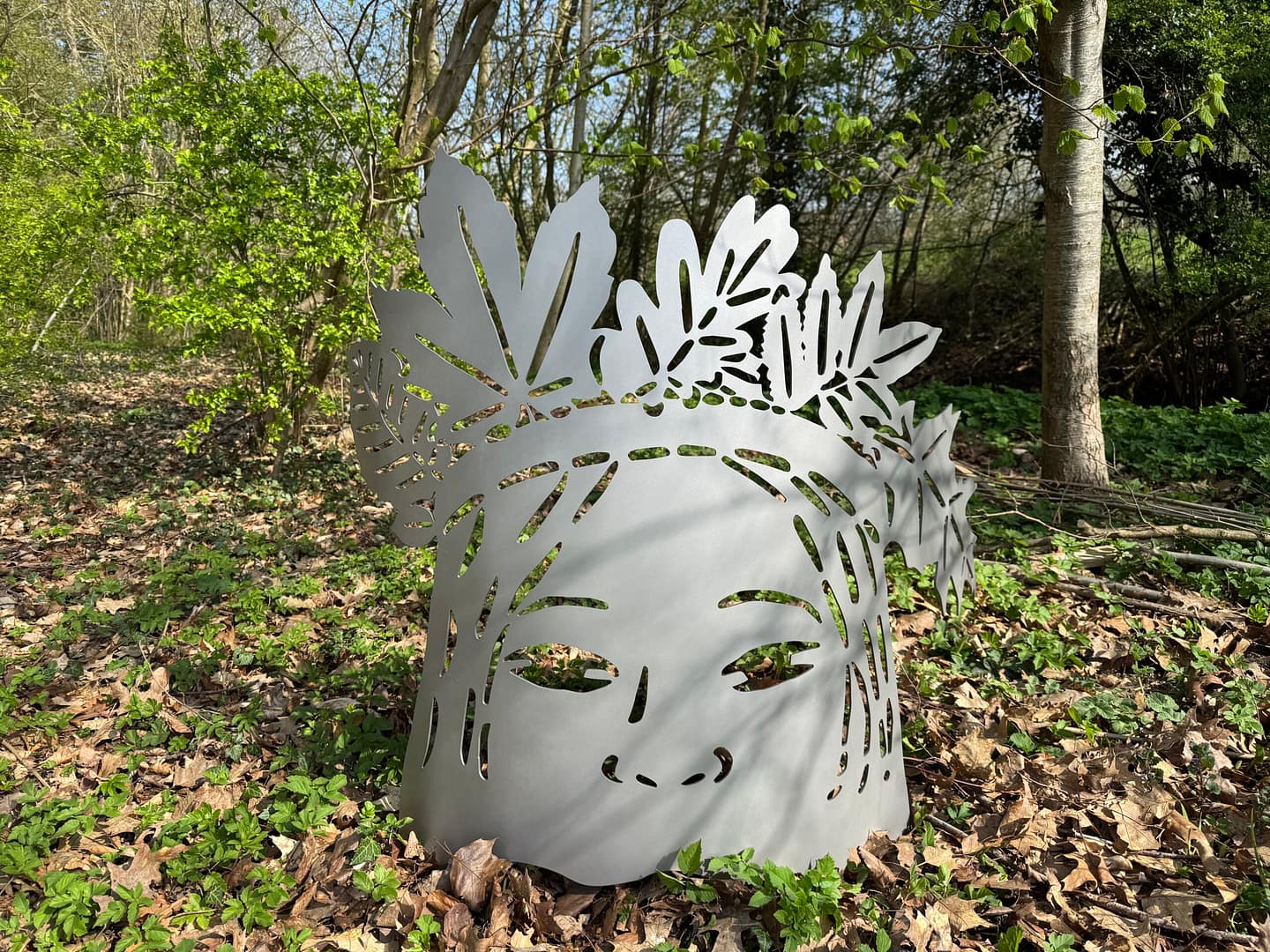 Schoonheid ligt soms vlak voor je voeten. Tijdens een boswandeling verzamelde ik alle verschillende blaadjes die ik vond. Ze werden de inspiratiebron voor ‘Moeder Aarde’. Getooid met bladerkroon steekt een vrouwfiguur haar hoofd net boven maaiveld uit.
