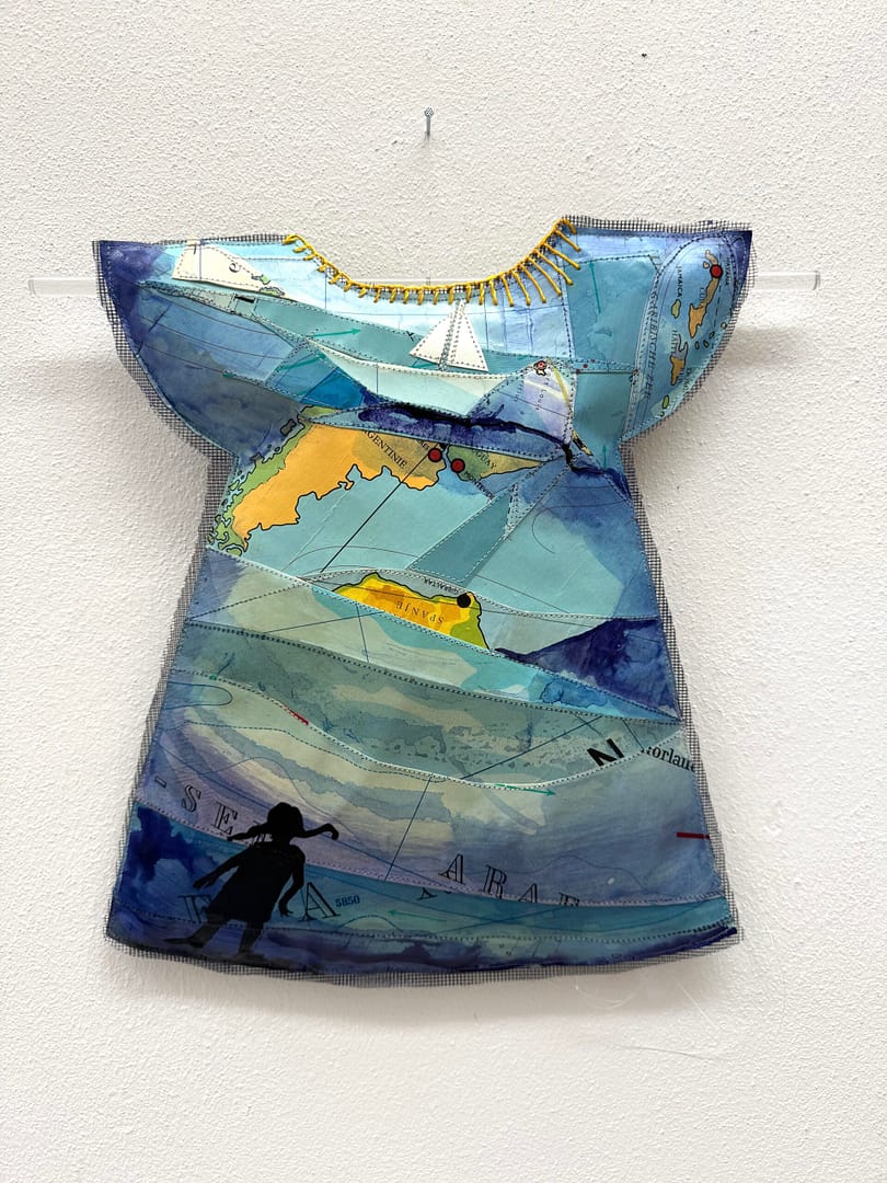 Landkaarten, fiberfill, glasvezel, inkt, borduurzijde, perspex