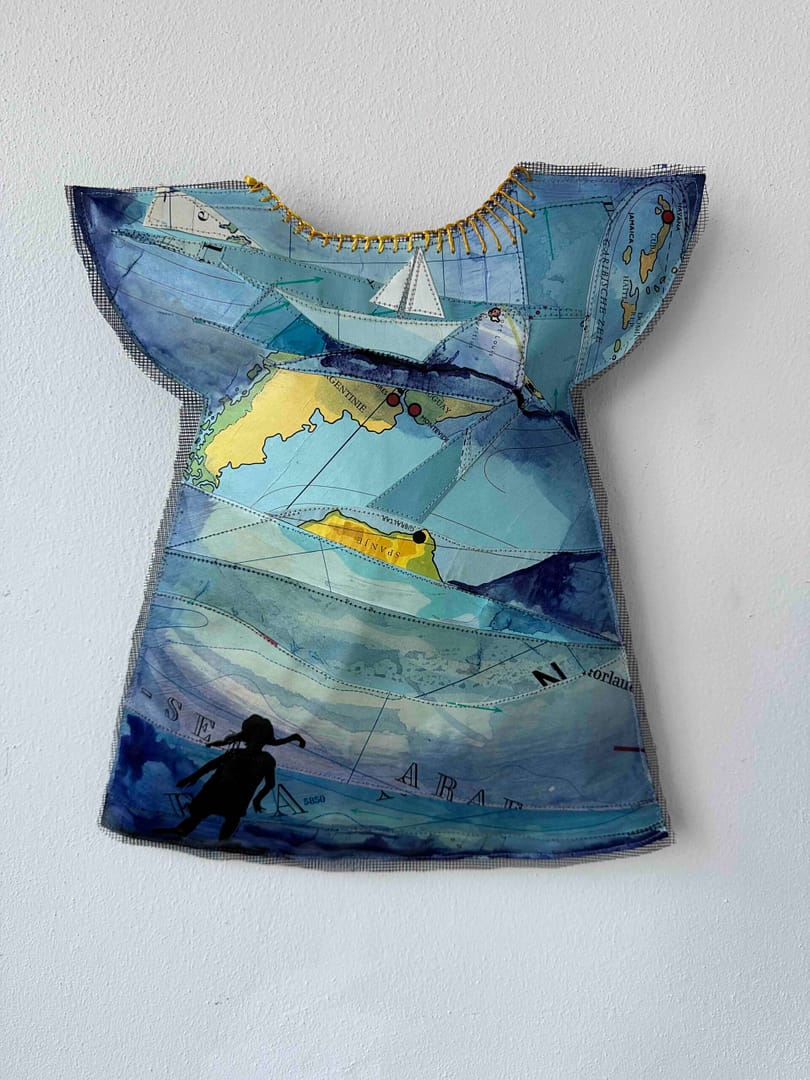 Landkaarten, fiberfill, glasvezel, inkt, borduurzijde
